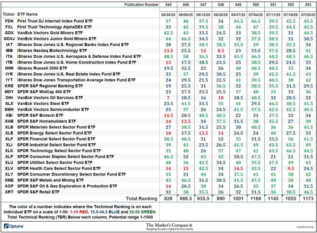 Welcome to The Market’s Compass US Index and Sector ETF Research, Week #553. As at all times it highlights the technical adjustments of the 30 US Index and Sector ETFs that I observe on a weekly foundation and usually publish each third week. Previous publications could be accessed by paid subscribers by way of The Market’s Compass Substack Weblog.